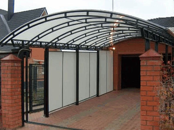 Стоимость установки данной конструкции меняется в зависимости от величины покрываемой площади, количества опор и промежутка между ними, толщины колон и необходимости их бетонирования и от толщины поликарбоната